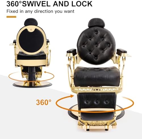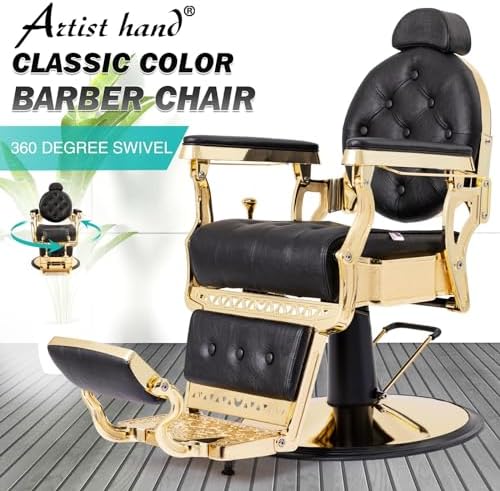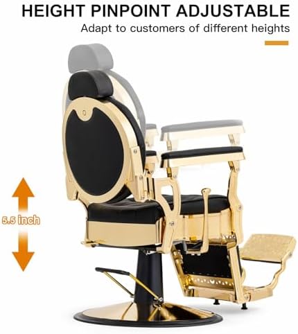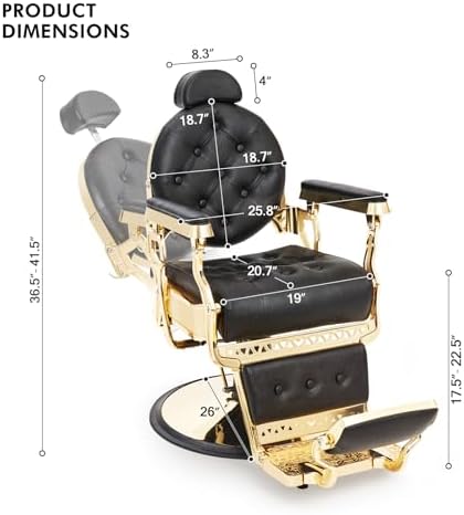 Brand Artist hand Color Gold2 Product Dimensions 24"D x 24.8"W x 40"H Special Feature Antique styling, padded armrests, adjustable & removable headrest, full 45 degree recline, metal towel & tool hangers, and backrest recline up to 135 degrees Product Care Instructions Wipe Clean Unit Count 1.0 Count Recommended Uses For Product Haircutting, Shaving Style Retro Pattern Solid Finish Type Chrome Plated" or "Chrome Finish Room Type Barbershop Age Range (Description) Adult Included Components metal towel hanger, metal tool hanger Theme Vintage Shape irregular shape Model Name Vintage Barber Chair Surface Recommendation Hard Floor Seat Back Interior Height 18.7 Inches Furniture base movement Swivel Indoor/Outdoor Usage Indoor Furniture Finish Chrome Seat Height 22.5 Inches Seat Depth 20.7 inches Cushion Style Boxed Edge Seat Length 25.8 Inches Reclining Position Count [MINIMUM] 2 Tilting Yes Is Customizable No Is Electric No Is Foldable No Form Factor Recliner Manufacturer Artist hand ASIN B0D6BK4PP3 Customer Reviews