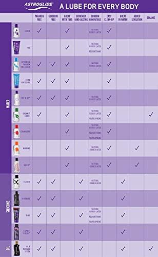 Pack of 2. This unique blend of high-quality silicone-based lubrication offers silky smooth satisfaction for sex play in and out of the water. Our lubricant is extremely long-lasting with a silky feel that is never sticky. The natural ability of silicone to resist water lets our lubricant stay slick and work great in settings where other types of lube wash away. Our hypoallergenic formula is a great choice for people with skin sensitivities. Made with coconut oil, ASTROGLIDE’s silicone lubricant gel stands out against other types of lube, both silicone-based and beyond. This lubricant is silky smooth, super long-lasting and works great for sensitive skin – from the shower to the bedroom. Let ASTROGLIDE bring you luxuriously long-lasting lubrication with this no-drip silicone gel.