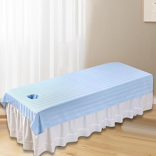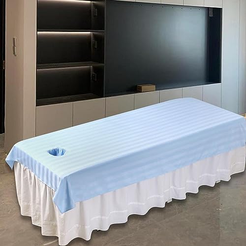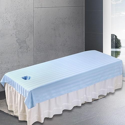 Beauty Bed Sheet,Massage Bed Tablecloth with Face Breath Hole, Massage Table Sheet Bed Cover Massage Equipment for Beauty SPA,Clubs Adults, Light blue