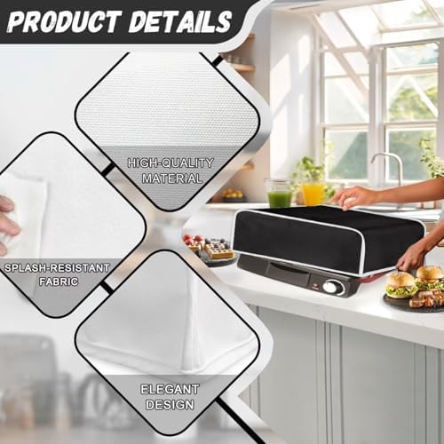 Features Made of high-quality polyester, dustproof, waterproof. 2 size for your choice. Fits most electric griddles, electric grills, sandwich makers, panini presses, electric stone grills and small kitchen appliance. Keep your electric griddles from dust, dirt, scratches, spills, spatters. Easy to clean, machine washable cold water dryer safe, tumble dry low. Notes Please allow little color difference due to different camera or light environment. Due to different measurement methods, it is reasonable for 1-2cm size deviation.