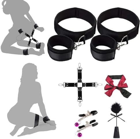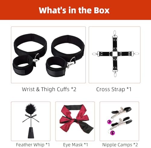 Bondage BDSM Sex Restraints Kit,7 Pcs Bondage Gear & Accessories with Nipple Camps,Cross Strap,Feather Whip,Sex Blindfold,Wrist & Thigh Cuffs Bondage Restraints,Womens Sex Toys Couples Sex Toys