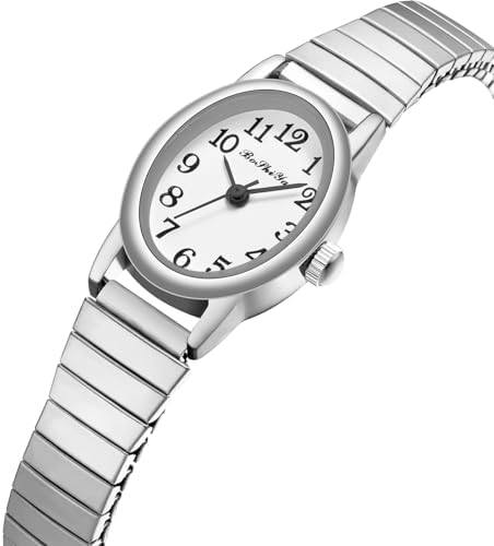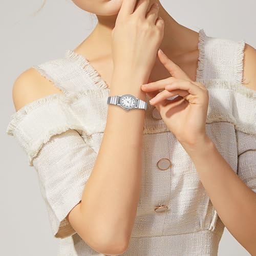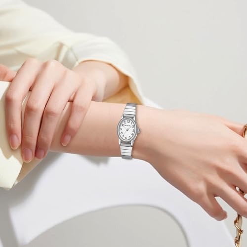BOSHIYA Silver Watches for Women Easy Read Analog Quartz Women Watch with Stainless Steel Expansion Band Ladies Wrist Watches Waterproof