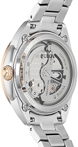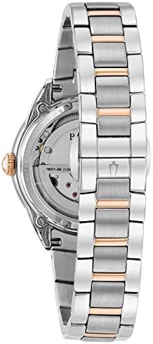 Brand, Seller, or Collection Name Bulova Model number 98P170 Part Number 98P170 Item Shape Round Dial window material type Sapphire Crystal Display Type Analog Clasp Push Button Deployment Clasp Metal stamp no-metal-stamp Case material Stainless Steel Case diameter 35 millimeters Case Thickness 11 millimeters Band Material Stainless Steel Band size Womens Standard Band width 15 millimeters Band Color Two Tone Dial color White Bezel material Stainless Steel Bezel function Stationary Calendar No Calendar Special features Open Aperture, Hearbeat, Hack feature Movement Japanese Automatic Water resistant depth 100 Feet Warranty Manufacturer’s warranty can be requested from customer service. Click here to make a request to customer service.