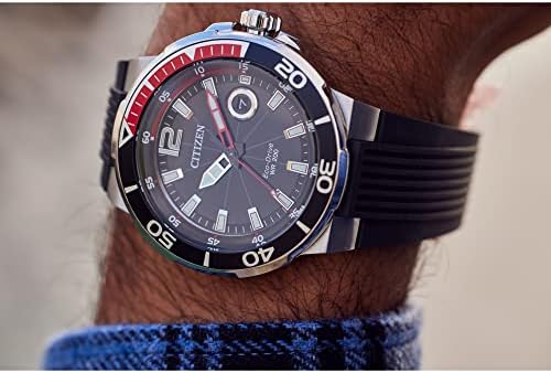Brand, Seller, or Collection Name Citizen Model number AW1429-00E Part Number AW1429-00E Item Shape Round Dial window material type Mineral Crystal Display Type Analog Clasp Foldover Clasp Case material Stainless Steel Case diameter 46 millimeters Case Thickness 13.9 millimeters Band Material Polyurethane Band size Mens Standard Band width 26 millimeters Band Color Black Dial color Black Bezel material Stainless Steel Bezel function Bidirectional Calendar Date Special features Bezel Markings, Glow In The Dark Movement Eco-Drive Water resistant depth 200 Meters Warranty Product Warranty: For warranty information about this product, please click here.