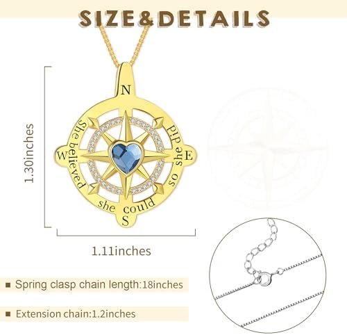 Necklace Material:The compass necklace made of 925 sterling silver, providing a durable and high-quality piece of jewelry. High quality polishing, nickel free, rust free, especially for sensitive skin.