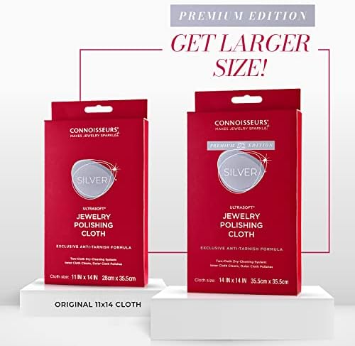CONNOISSEURS Premium Edition Extra Large 14x14 Ultrasoft Silver Jewelry Polishing Cloth with Anti-Tarnish, Value Size 14x14 Inches