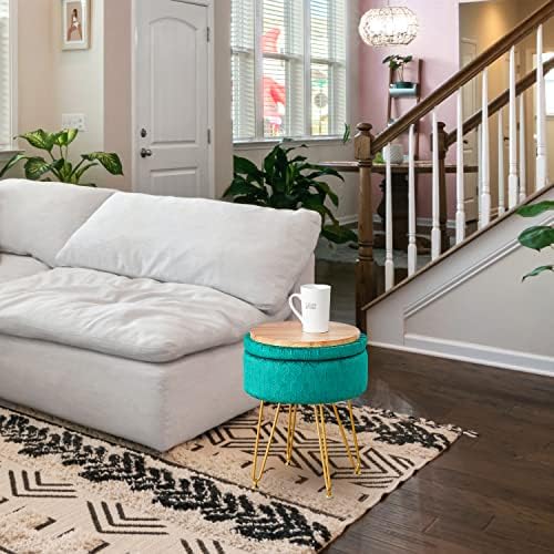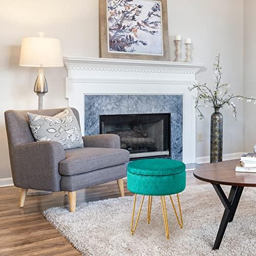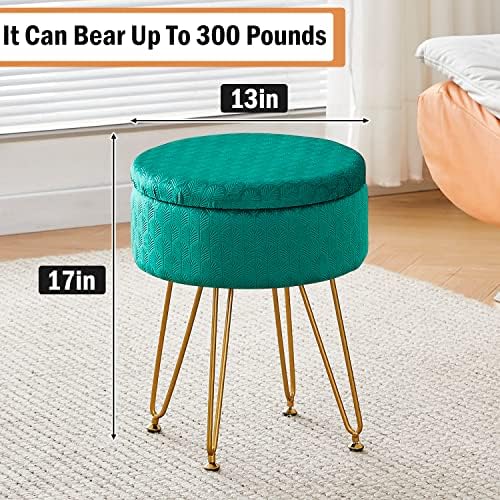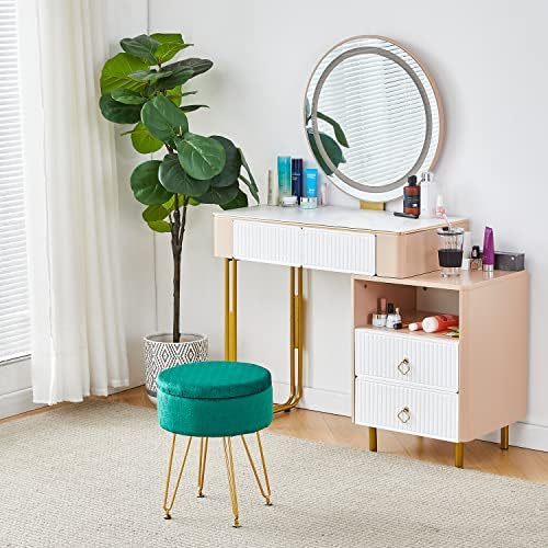 Easy assembly: Just use a wrench to screw the screws into the holes in the bottom of the makeup stool to complete the assembly. A sturdy wood frame and four metal gold legs make this makeup stool ottoman durable and capable of holding up to 300 lbs.