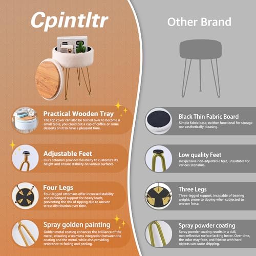 The seat cushion of this round velvet modern ottoman is filled with high-density foam and has a slow-rebound comfort, when you sit on it, you will feel soft and comfortable. Perfect for makeup room, writing desk, bedroom, living room, coffee table, shoe cabinet.