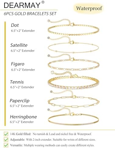 14K real gold plated bracelets, lead free, nickel free, non Tarnish and hypoallergenic.Great for sensitive skin and all-day Wear.