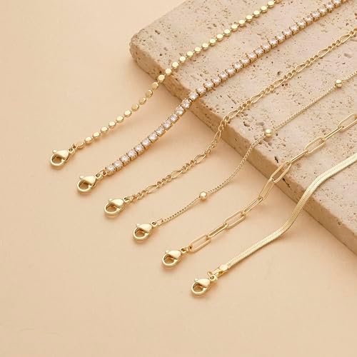 1 Tennis Bracelets2 Figaro Bracelets 3 Dot Chain Bracelets 4 Paperclip Bracelets 5 Satellite Bracelets 6 Herringbine Bracelets.