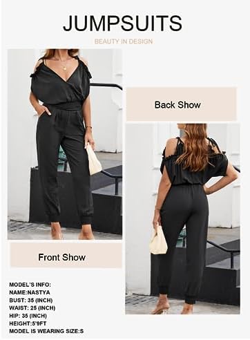 Cute ColdShoulder :The strings for shoulder straps are adjustable to yourcomfort, shows sexy neck line, hide fat arms,it's a very lovely and chicjumpsuit with wrap v neck and backless design.