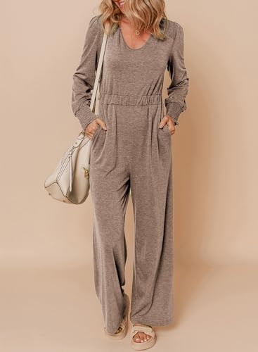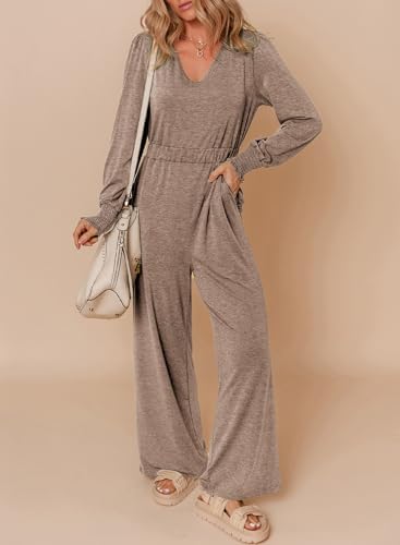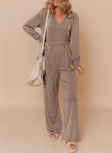 Dokotoo Long Sleeves Jumpsuit V Neck Elegant for Womens Dressy Outfits