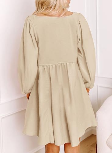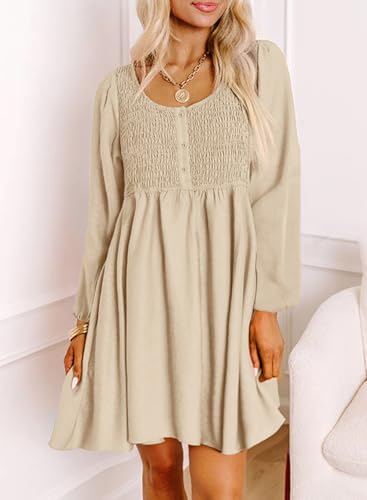 Dokotoo Womens Long Sleeve Empire Waist Smocked Flowy Mini Dress