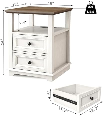REDAYFUR 24"Tall 18" Wide End Table with Double 18W PD Charging Station