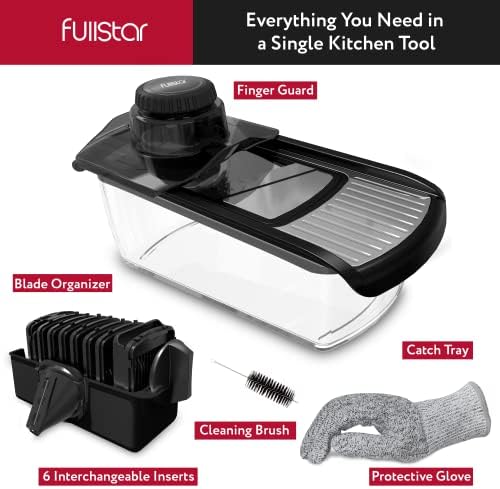 Fullstar Mandoline Slicer for Kitchen, Cucumber Slicer, Cheese Grater Vegetable Spiralizer and Veggie Slicer for Cooking, Kitchen Gadgets Organizer & Safety Glove Included (11 in 1, Stainless Steel)