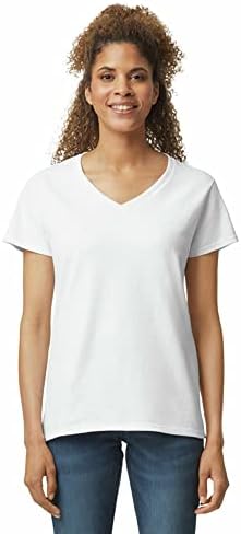 Beloved for the sculpted appearance of its V-neck, Gildan’s Women’s Heavy Cotton V-Neck T-Shirt is great for shopping or relaxing at home, because it’s made of a midweight 100% cotton that is cool in the summer and great as a base layer in the winter. It’s also ideal for decorating with screen printing, embroidery and iron-on transfers as well as bleaching and tie dye.