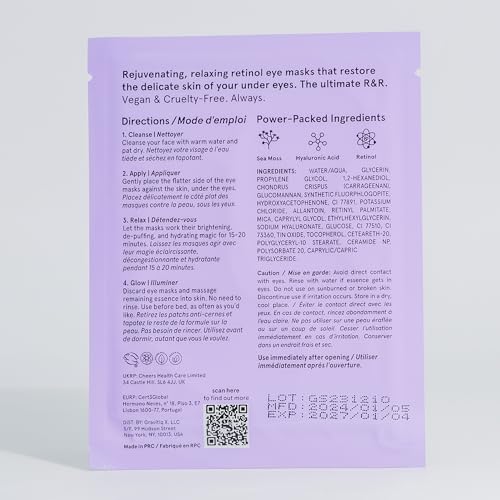 Our purple under eye patches for puffy eyes come in singular, travel-friendly packets that ensure a hygienic and effortless application every time. For bright eyes whenever you are, at home or on-the-go!
