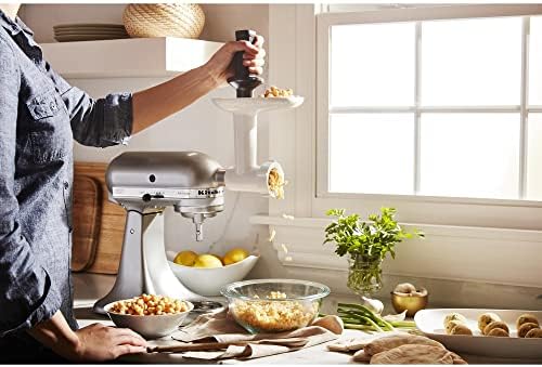 With the Sausage Stuffer Kit (KSMSSA) or Fruit and Vegetable Strainer (KSMFVSP).