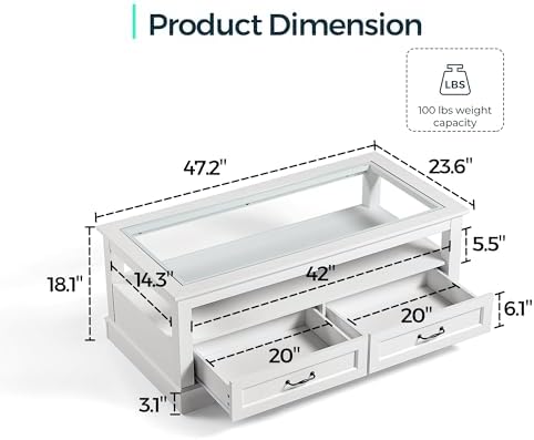 LINSY HOME Modern Coffee Table Sets 3 Pieces, Living Room Table Set Include 47" Coffee Table, End Table Set of 2, White