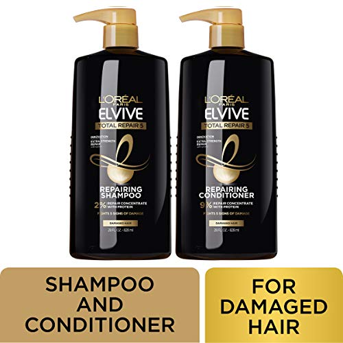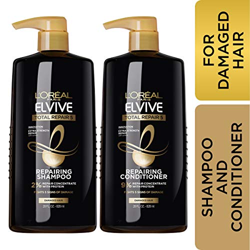 L'Oreal Paris Total Repair 5 shampoo and conditioner helps repair the five visible signs of damaged hair - split ends, weak, rough, dull and dehydrated. The results? 1) Rebuilt fibers 2) Strength 3) vitality 4) silkiness and 5) Shine. Our strengthening system with protein + Ceramide helps fortify each strand, reinforcing hair fiber and sealing-in nourishment. For best results, use L'Oreal Paris Total Repair 5 shampoo and conditioner together. When using complete system of shampoo, conditioner, and treatment. Packaging may vary, what you receive may not be what is reflected on site.