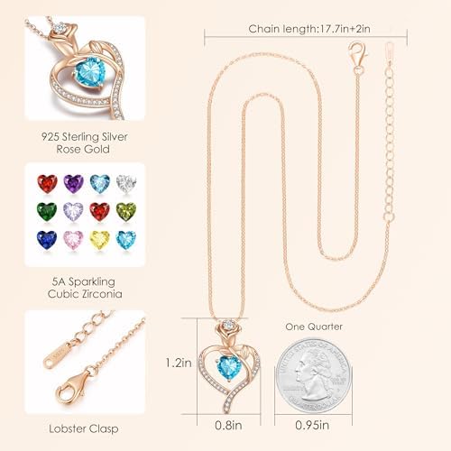 LOUISA SECRET Rose Flower Heart Birthstone Necklace