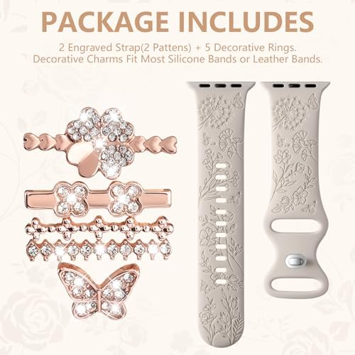 2 Pack Flower Engraved Band with Decorative Charms forApple Watch Bands