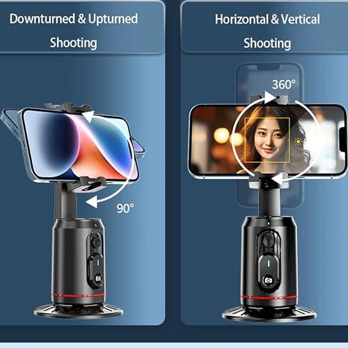 MQOUNY Auto Face Tracking Phone Holder, 360° Rotation Face Body Phone Tripod Smart Shooting Camera Mount with Rechargeable Remote and Light for Live Vlog Streaming Video, Rechargeable