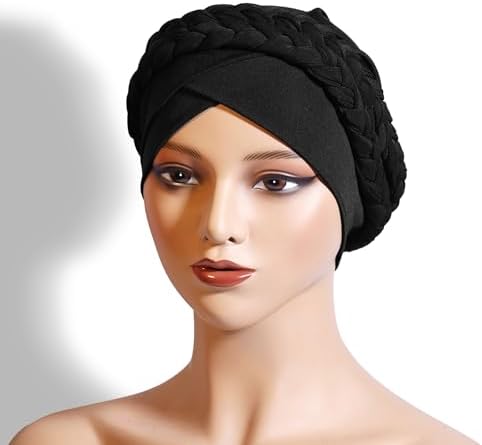 Soft Material: These African Turban Hats are crafted from soft milk silk fabric, making them lightweight, breathable, and skin-friendly. The double twisted braids hair cover wrap hats are easy to wear and convenient for maintaining your hairstyle, ensuring comfort and safety for your skin. One Size Fits Most Women: Our turban headwraps are highly elastic with dimensions of W9.44"/24cm, H10.23"/26cm, and a head circumference range of 17.3"-22.4"/44-57cm, ensuring a perfect fit for most women. They fit snugly without being too tight. Fashion Design: Featuring a pre-tied double twisted braids design, these turbans are simple, fashionable, and elegant. The headscarf is pre-tied, allowing you to wear it directly without hassle, saving time and effort. Pair it with various outfits to achieve a stylish and charming look. Versatile Occasions: Perfect for a variety of settings, including outdoor and indoor activities, sports, parties, weddings, dates, performances, church prayers, work, daily life, and more. They can also serve as headwraps for face wash and makeup, nightcaps, or chemo headscarves for cancer patients undergoing chemotherapy. Perfect Gift: Available in different colors, these fashionable bandanas can easily match most outfits, making them an ideal gift for family, girlfriends, and friends. Help them stay charming and stylish in daily life and on special occasions. For best care, please hand wash with similar color clothes in warm water using mild detergent.