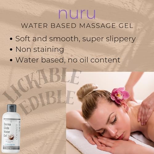 Nuru Massage Therapy Gel for Date Night Kissable Water Based Oil Free Non-Staining Non-Sticky Super Gliding All Natural (Coconut)