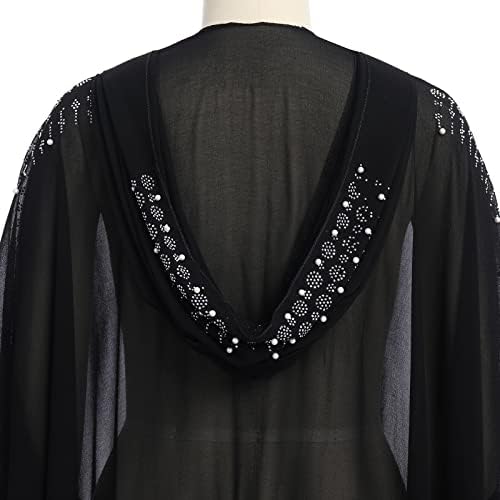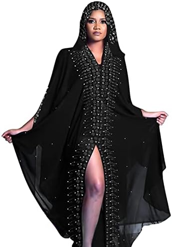 Dubai Outfits for Women, Batwing Sleeved Hooded Beaded Embroidery Abaya Dress