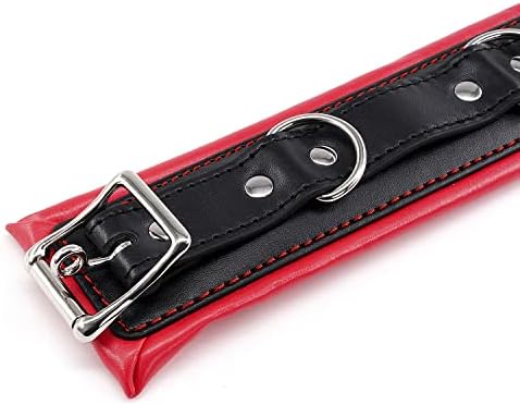 Padded Leather Bondage Handcuffs and Ankle Cuffs Set, Leather Sex Toys SM Wrist Cuffs for Bondage Restraints, Bondage Kit Sex Cuffs, Bondage Cuffs for Sex Games (Wrist & Ankle, Red/Black)