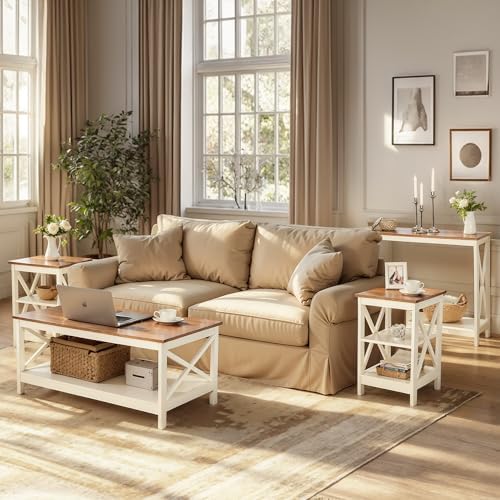 Matching coffee table and sofa table from the same range offers instant cohesion