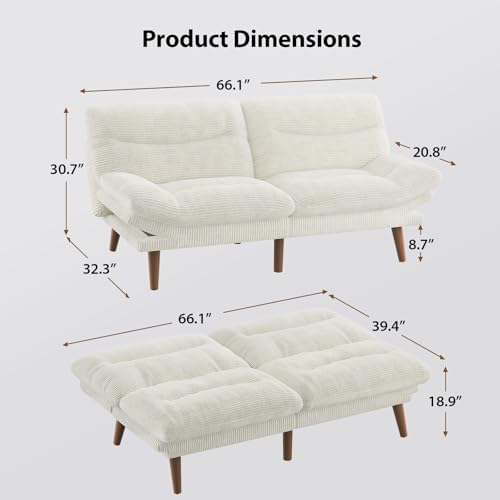 Easily switch from relaxation to rest with the futon sofa bed. Designed for modern living, this stylish futon couch features soft corduroy fabric and memory foam cushions to provide comfort and elegance, perfect for small spaces, guest rooms, or living rooms.