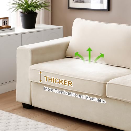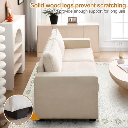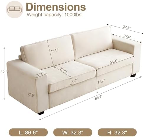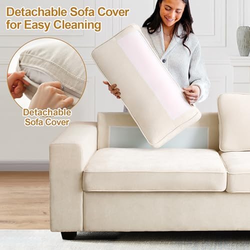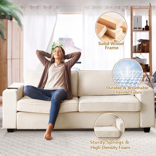 Pregaspor 86.6" Modern Chenille Sofa Couches for Living Room, Comfy 3 Seater Deep Sofa, Removable Sofa Cover Washable Sofa, Space Spring Cushions and Solid Wood Frame, Easy to Install (Beige)