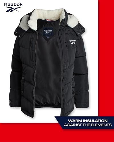 Reebok Women's Puffer Jacket - Heavyweight Quilted Puffer Jacket with Faux Fur Trim Hood - Outerwear Jackets for Women (S-XL)