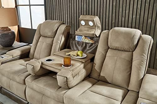 This sleek, ultra-modern power reclining sofa has it all. With designer looks and head-to-toe comfort, the reclining sofa with drop-down table has the upscale look of leather at a scaled-down faux leather price. Its two-tone upholstery is more durable and water-repellent than regular leather, an added bonus for families with children or pets. Features including wireless and USB charging, an adjustable headrest and an extended "zero-gravity" ottoman for improved circulation make this the next generation of power recliners.