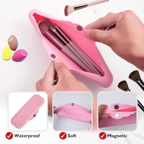 Elevate Your Beauty Routine with Our Silicone Makeup Brush BagTravel Makeup Brush HolderCrafted from premium food-grade silicone, our makeup brush bag is designed to stand the test of time. It's not only incredibly soft to the touch but also durable and easy to clean. Silicone makeup brush HolderThis versatile bag features multiple compartments to neatly store and organize your brushes, sponges, and beauty essentials. Whether you're getting ready at home or on the go, our brush bag ensures that you have quick and easy access to your tools. Silicone Makeup Brush BagWorried about your brushes falling out? Magnetic design and secure snap closure keep your brushes and cosmetics safe and secure. Plus, the bag's stylish design is available in a variety of trendy colors, adding a touch of elegance to your beauty routine.Brush Organizer CosmeticDesigned with portability in mind, our makeup brush bag is compact and lightweight, making it the ideal travel companion. Slip it into your handbag or luggage, and you'll always have your favorite beauty tools at your fingertips wherever you go.