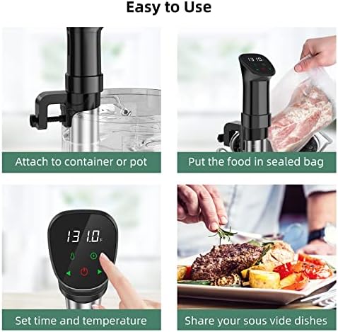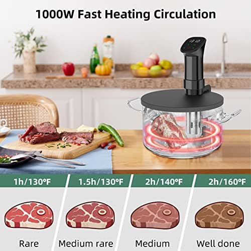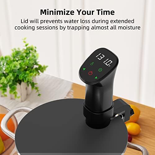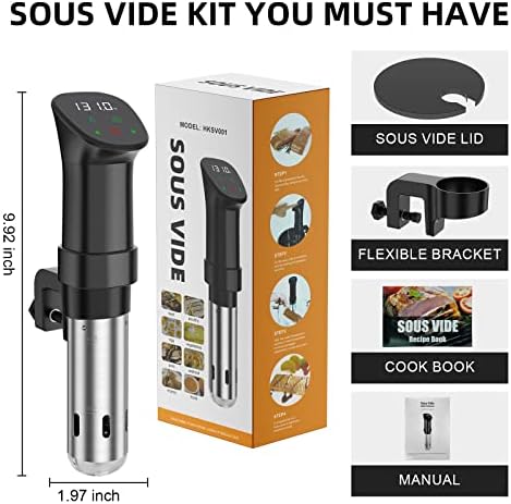 Elevate your culinary game with the sous vide Cooker Kit. This powerful 1000W immersion circulator features a stainless steel pump and precise temperature control from 77°F to 198.5°F (25°C to 92.5°C), ensuring your dishes are cooked to perfection every time. The digital touch screen allows you to set accurate timers up to 99 hours and 59 minutes, while the 0.1°C temperature sensor maintains the desired temperature. With a 360-degree strong water cycle, your food is evenly cooked for consistent results. The included lid and recipes make it easy to explore the world of sous vide cooking. Crafted with durable stainless steel, this sous vide machine is built to last.