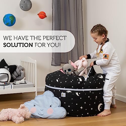 Teaching the kids how to keep their stuff organized is not an easy task as every parent knows…From our experience, keeping it simple is the secret. Our bag encourages children to pick up their toys because it's so easy - all they have to do is simply throw them inside the bag. Also, once they’ve finished, they are instantly rewarded by having their own personal seat they've just created to rest in from all that hard work...