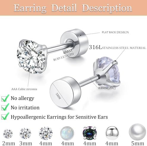 Surgical Steel Flat Back Stud Earrings and Hoops