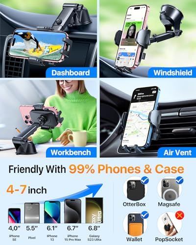 Upgrade suction cup, 80lbs maximum suction power, Perfect phone mount for car.