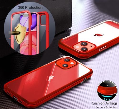 UBUNU for iPhone 14 Case with Screen Protector Built in Tempered Glass 2024 Upgraded Dual Layer Full Body Protective Clear Phone Case for iPhone 14 6.1 inch, Reddummy