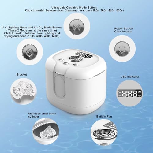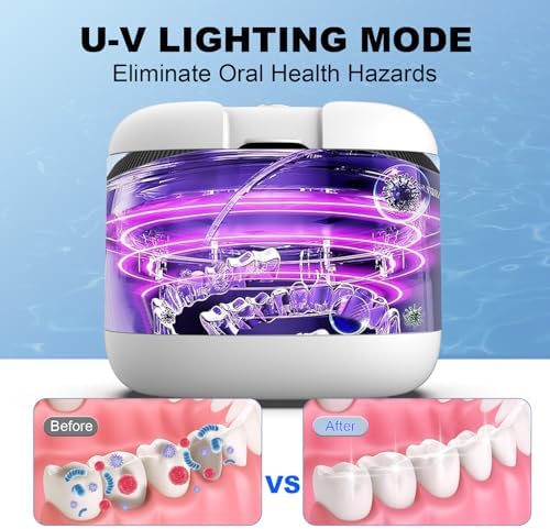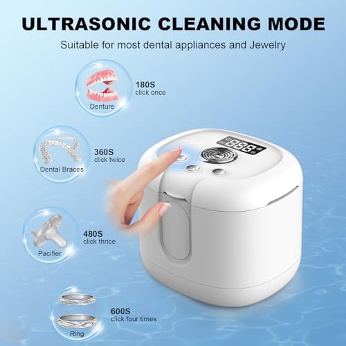 Ultrasonic Cleaner Denture Cleaning Machine: 43kHz Portable Ultra Sonic Dental Cleaning Pod for Retainer Mouth Guard Aligner Braces Night Guard
