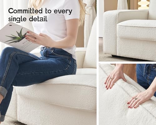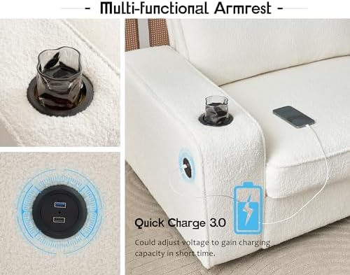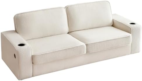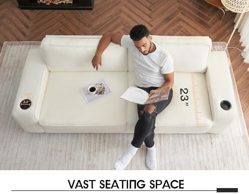 VanAcc Sofa, 89in Modern Sofa with USB Charging Ports & Cup Holders, Deep Seat Sofa Couch- Comfy Couch for Living Room (Offwhite Bouclé)