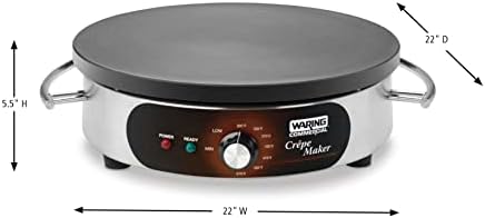 Special Feature Keep Warm Setting, Non Stick Coating, Manual Color Silver Material Stainless Steel Brand Waring Product Dimensions 22"D x 22"W x 5.5"H Wattage 1800 watts Item Weight 45 Pounds Included Components Crepe Maker, spreader and spatula Style 240 Volt | 6-15 Plug | 2800W Voltage 120 Material Type Free BPA Free Number of settings 7 Warranty Type Limited Global Trade Identification Number 00040072069925 UPC 040072069925 Manufacturer Conair LLC Waring Commercial Inc. (BISS) Item Weight 45 pounds ASIN B01NC3I76N Country of Origin China Item model number WSC165BX Customer Reviews