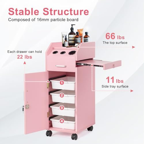This salon cart has 4 sliding drawers, made of ABS material, which is more durable and can hold various beauty tools and supplies.