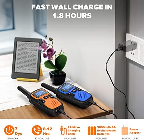 Wishouse Walkie Talkies for Adults Long Range-Handheld 2 Way Radios Rechargeable,Hiking Accessories Camping Gear Xmas Birthday Gift for Kids with Lamp,SOS Siren,NOAA Weather Alert,Easy to Use 4 Pack