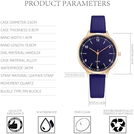 Main Features:Watch style: Casual, Fashion, RetroMovement type: Quartz watchShape of the dial: Round Display type: Japanese AnalogHour formats: 12 HoursDelicate Design. Combines fashion, quality, leading edge fashion, and value.Stainless Steel Dial Case Back Cover.Leather Strap Band.Our Service:You can return undamaged packing and watch within 60 days. We value customers’ shopping experience highly,if you have any questions or you don't know how to adjust watch time and band about this designer watchplease contact with us. We will try our best to resolve that you met.