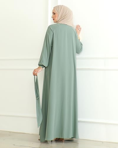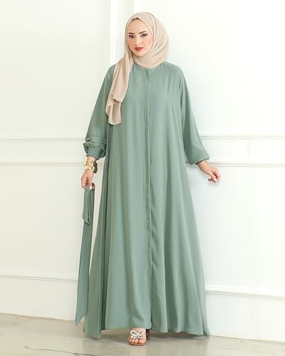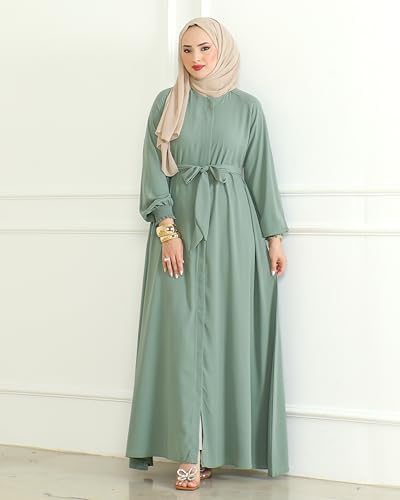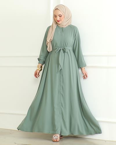 Women's Abaya with Zipper Includes Waist Belt Modest Turkish Long Sleeve Abayas for Women Muslim Fashion