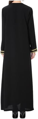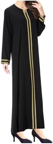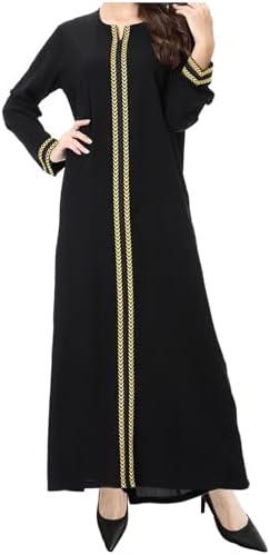 Feature:Solid color, golden embroidery, round collar, long sleeve, ankle length, muslim clothes for women, dubai attire for women, islamic dresses for women, evening dress long sleeve and maxi dress.